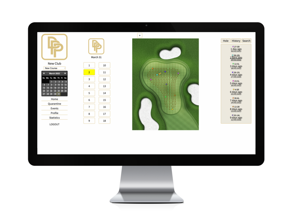 • Select your hole locations for the day while seeing areas used for previously selected holes